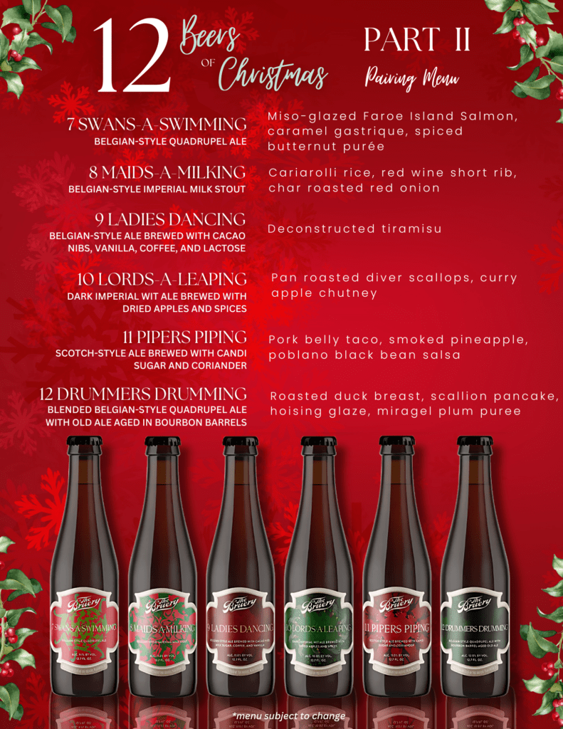 Join us for this two-part event: an exclusive pairing of the Bruery’s 12 Beers of Christmas with a special menu pairing curated by renowned Executive Chef Jon Harootunian.